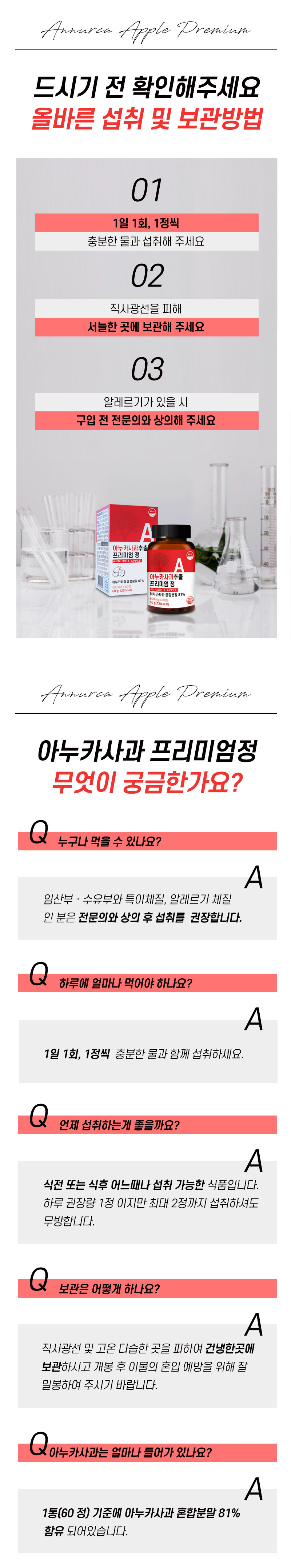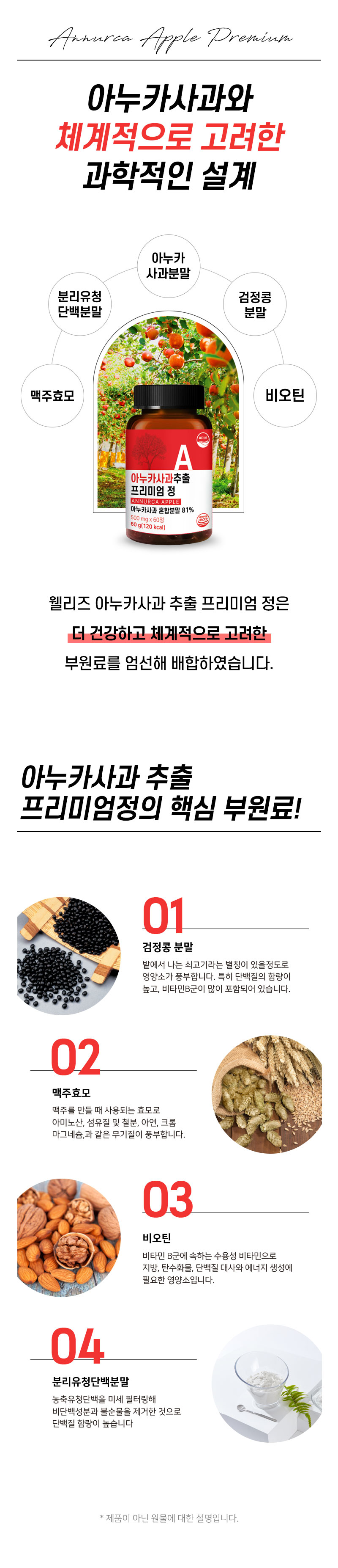 대표적인 항산화 물질인 프로시아니딘(Procyanidin)B2 함유량이 매우 높으며 부원료로 맥주효모, 비오틴, 검정콩분말, 분리유청단백분말이 들어있는 프리미엄 제품입니다.