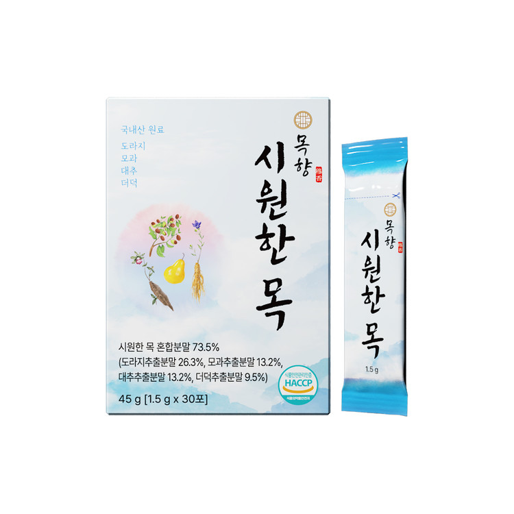 기관지에 좋은 도라지, 모과, 대추, 더덕 등 엄선된 4가지 재료를 목향의 황금 레시피로 배합한 목 관리 식품입니다.